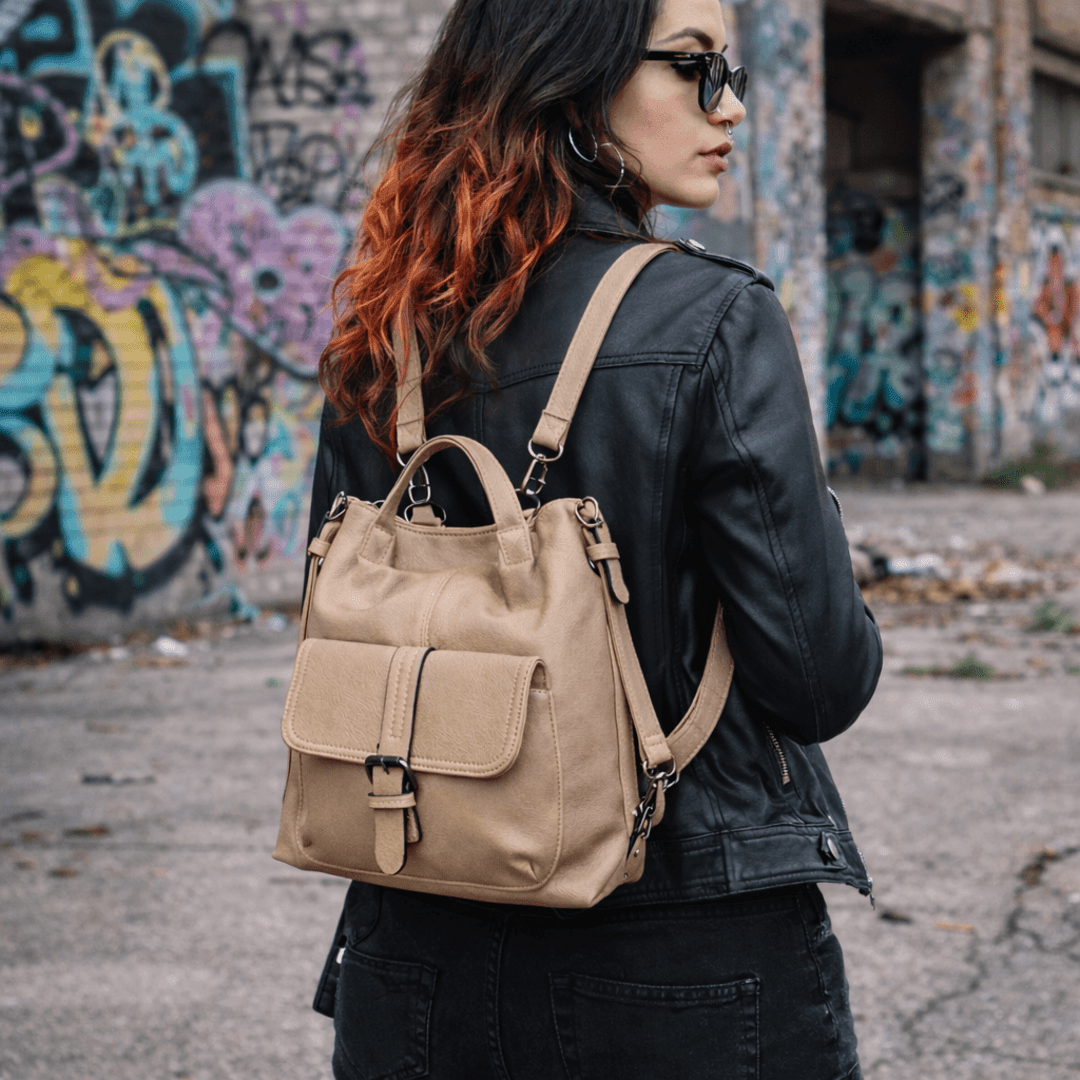 💓Nomad es tu compañero urbano para días imprevisibles. Su diseño convertible te permite llevarlo como bolso de hombro elegante o transformarlo en mochila funcional cuando el ritmo se acelera. El tono marrón claro evoca libertad y calidez, mientras que su estructura robusta guarda tus esenciales — incluso cuadernos A4 — sin perder estilo.