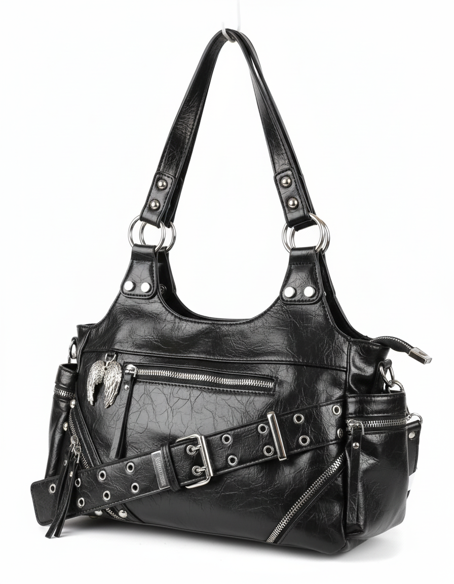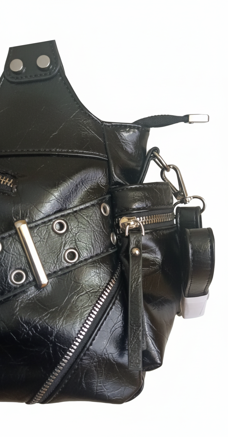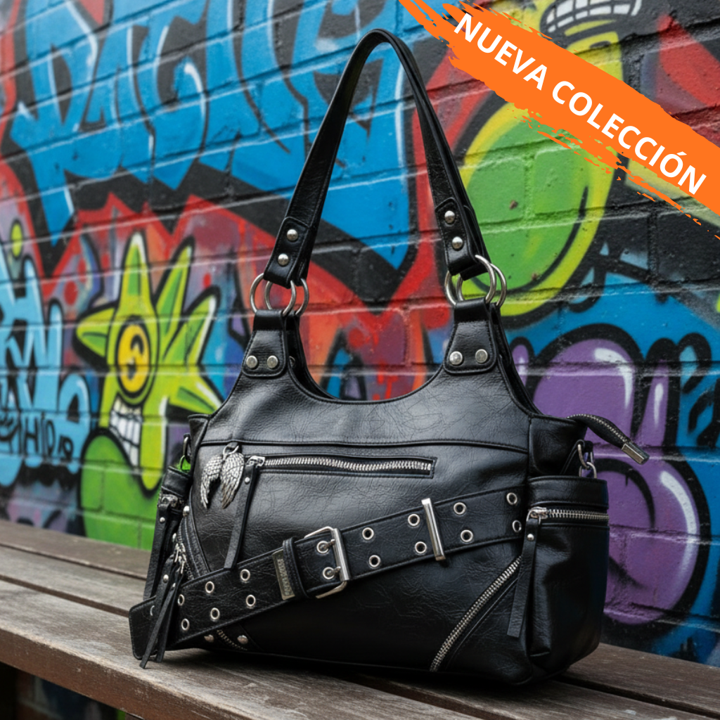 🖤Compacto pero funcional, ofrece espacio suficiente para tus esenciales diarios sin perder comodidad. Puedes llevarlo al hombro para un look más elegante o usarlo como bandolera cuando necesitas libertad de movimiento. Sus cremalleras, herrajes y detalles metálicos refuerzan su carácter fuerte y versátil.