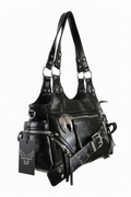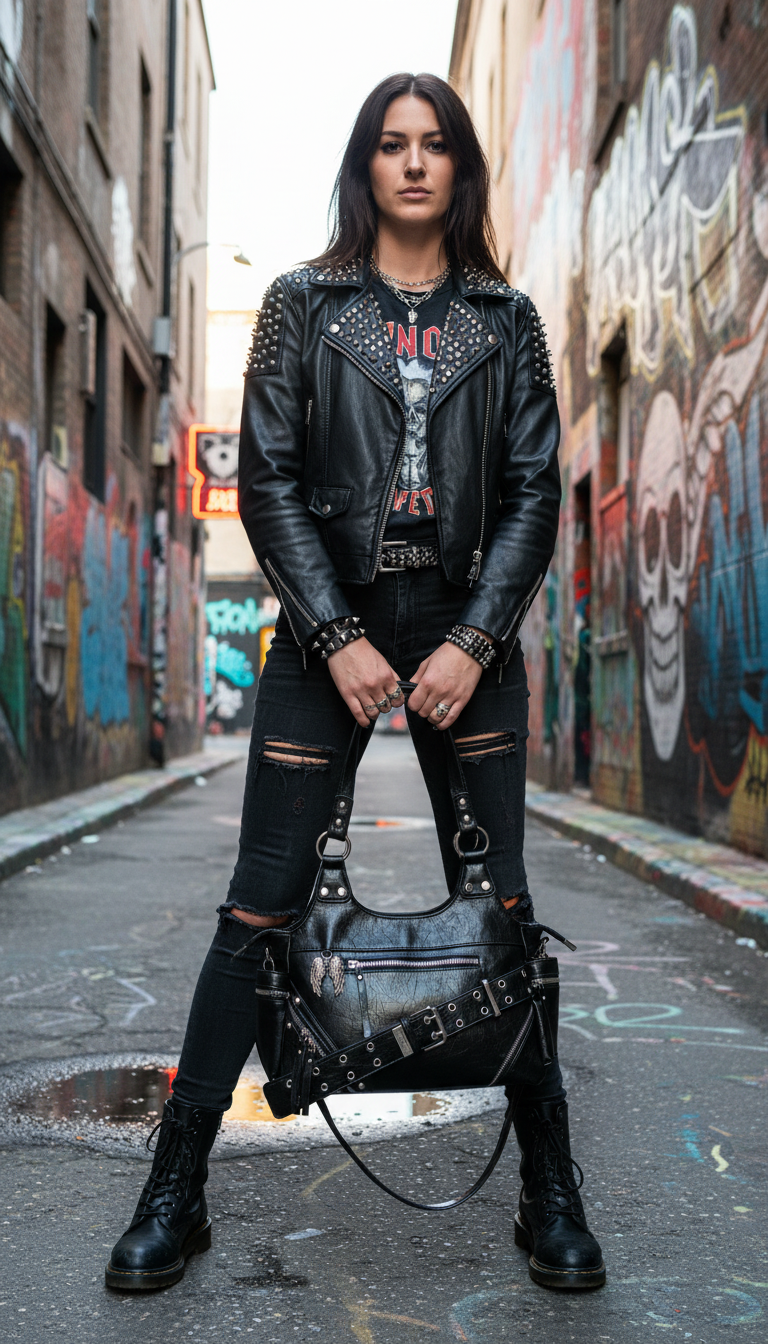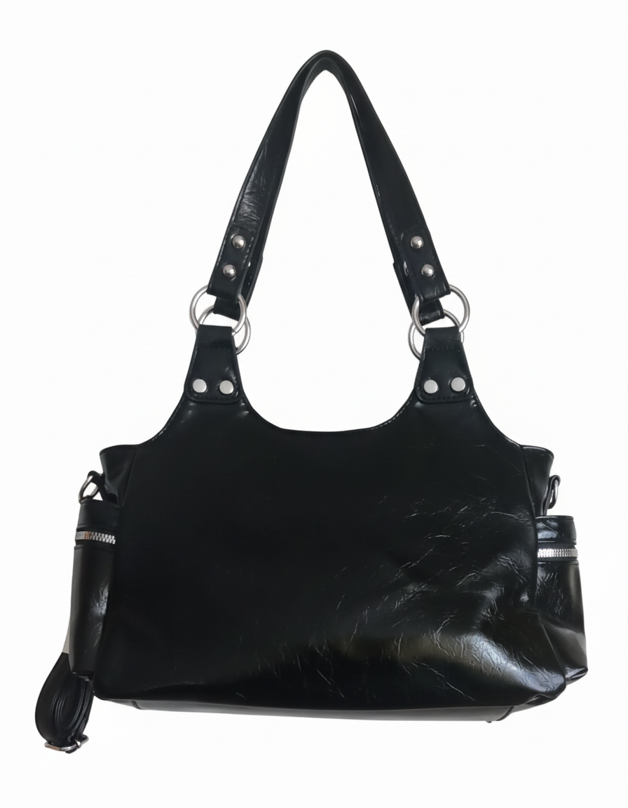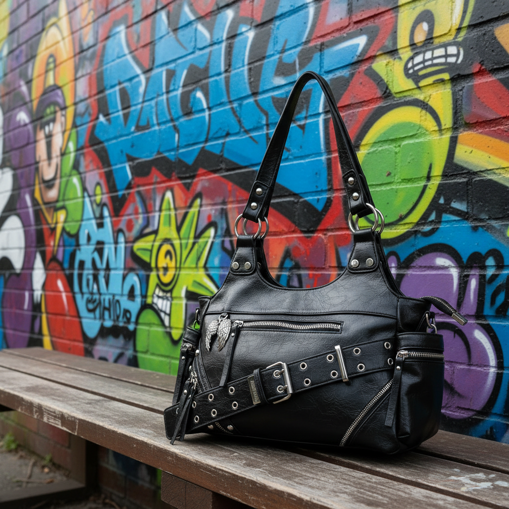 🖤Compacto pero funcional, ofrece espacio suficiente para tus esenciales diarios sin perder comodidad. Puedes llevarlo al hombro para un look más elegante o usarlo como bandolera cuando necesitas libertad de movimiento. Sus cremalleras, herrajes y detalles metálicos refuerzan su carácter fuerte y versátil.