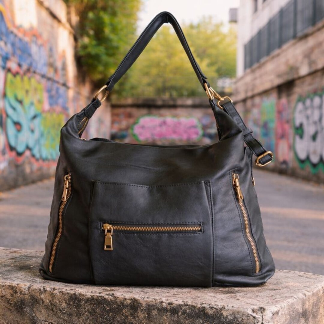 🐺Detalles en oro viejo: cremalleras, anillas y hebillas con acabado envejecido.