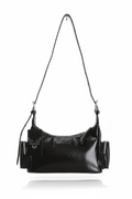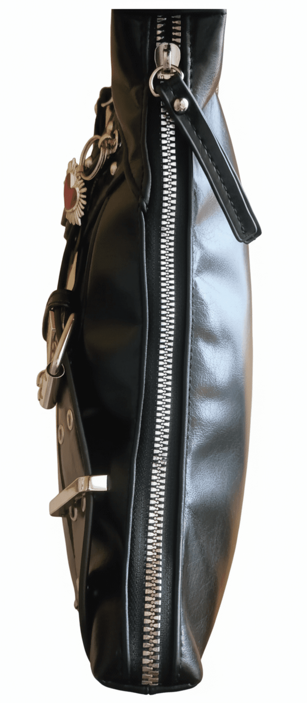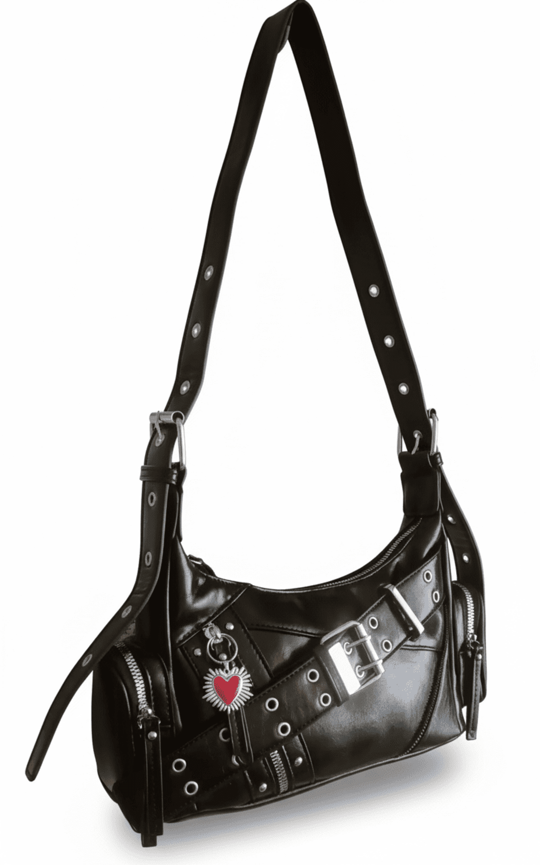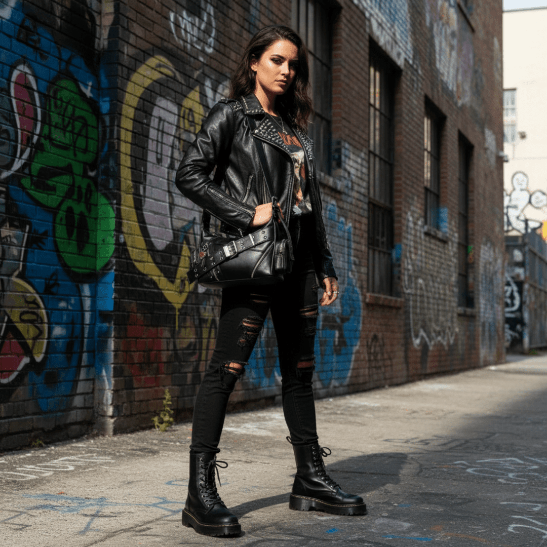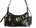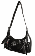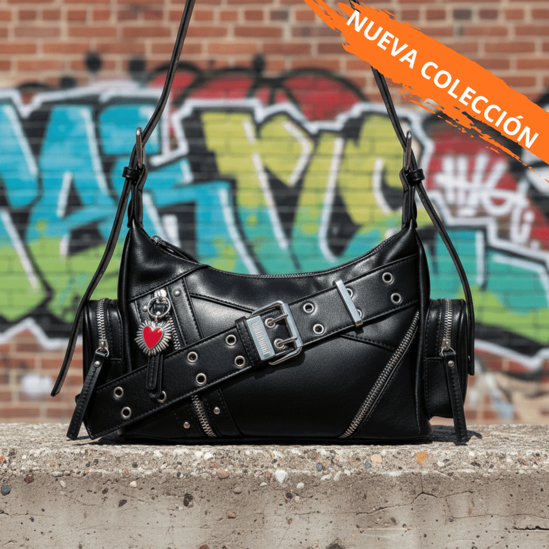 ❣️Piel sintética negra de acabado urbano. Herrajes y cremalleras plateadas