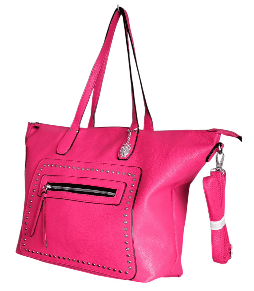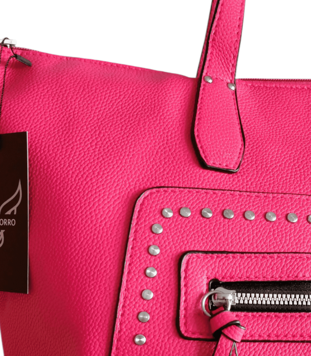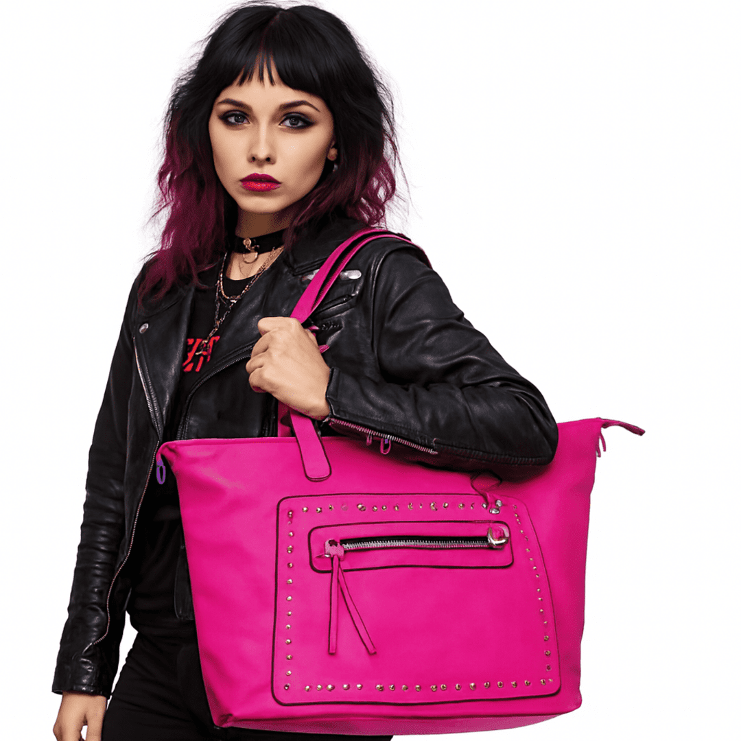 💗Diseño punk con tachuelas El bolsillo frontal con cremallera añade carácter y funcionalidad.