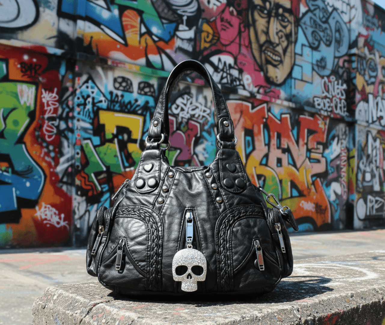 💀 Seguridad y resistencia: el bolso cuenta con cierres de cremallera robustos y herrajes metálicos que garantizan durabilidad.